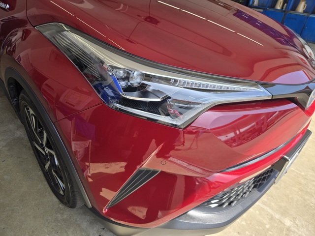 本日はご来店ありがとうございます。CH-Rのフレッシュキーパー+綿密研磨+樹脂フェンダーキーパー施工を賜りました。 お色がワインレッドという事で細々した線傷と樹脂の白っぽさが無くなり、施工する事でより塗装の艶、樹脂フェンダーの 艶が戻りました。またのご利用お待ちしております。