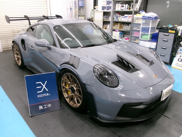 いつも当店をご利用いただき誠にありがとうございます。今回ご購入のポルシェ911GT3RSへEXキーパープレミアムをお任せいただきました。施工前に鉄粉除去、研磨にて塗装面を整えております。今後も愛車のお手入れは当店にお任せください。ご納車おめでとうございます!